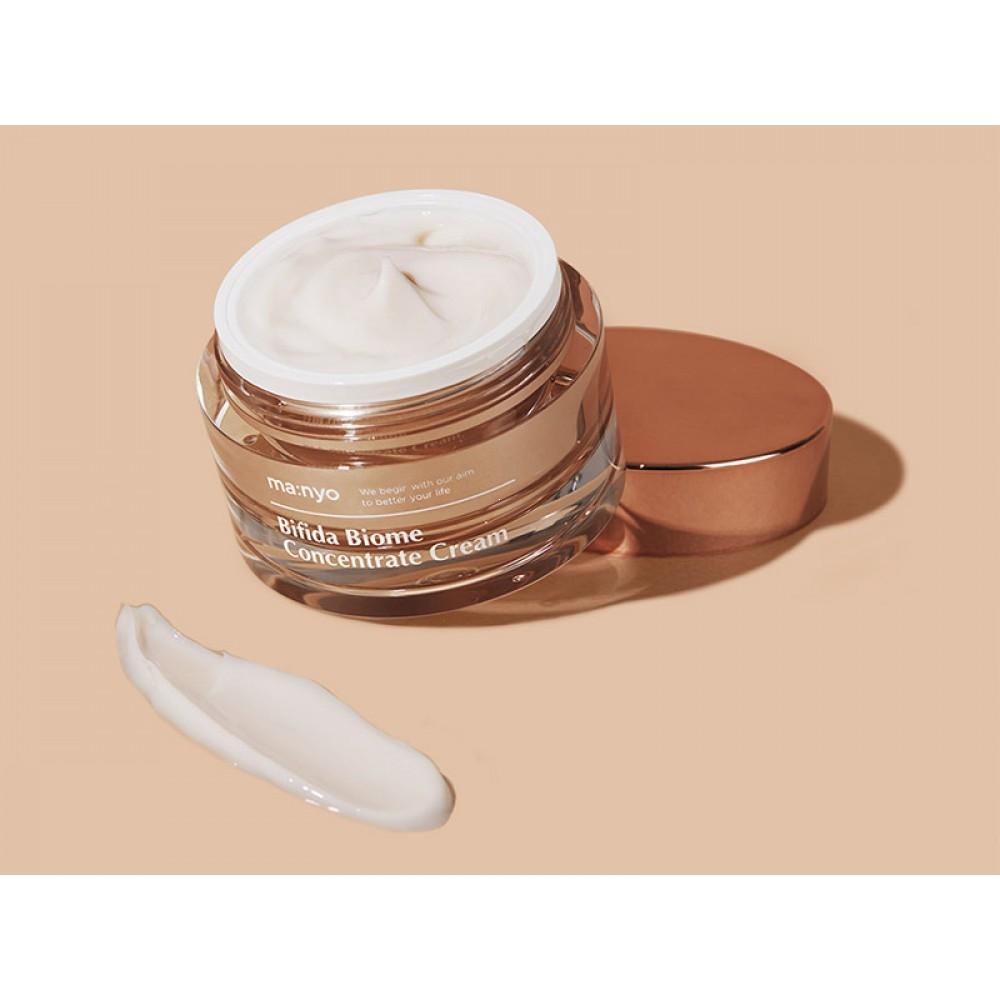 Омолаживающий концентрированный крем Manyo Bifida Biome Concentrate Cream интенсивно восстанавливает кожу, укрепляет липидный барьер и оказывает мощное антивозрастное действие. Препятствует образованию морщин и заломов, разглаживает микрорельеф кожи, мягко осветляет пигментацию и выравнивает тон кожи. Средство оказывает антиоксидантное действие и способствует выведению токсинов, препятствует возникновению окислительных процессов в клетках. Устраняет отечность, выводит лишнюю жидкость и подтягивает овал лица. Восстанавливает кожу после воздействия ультрафиолета и других факторов окружиющей среды.