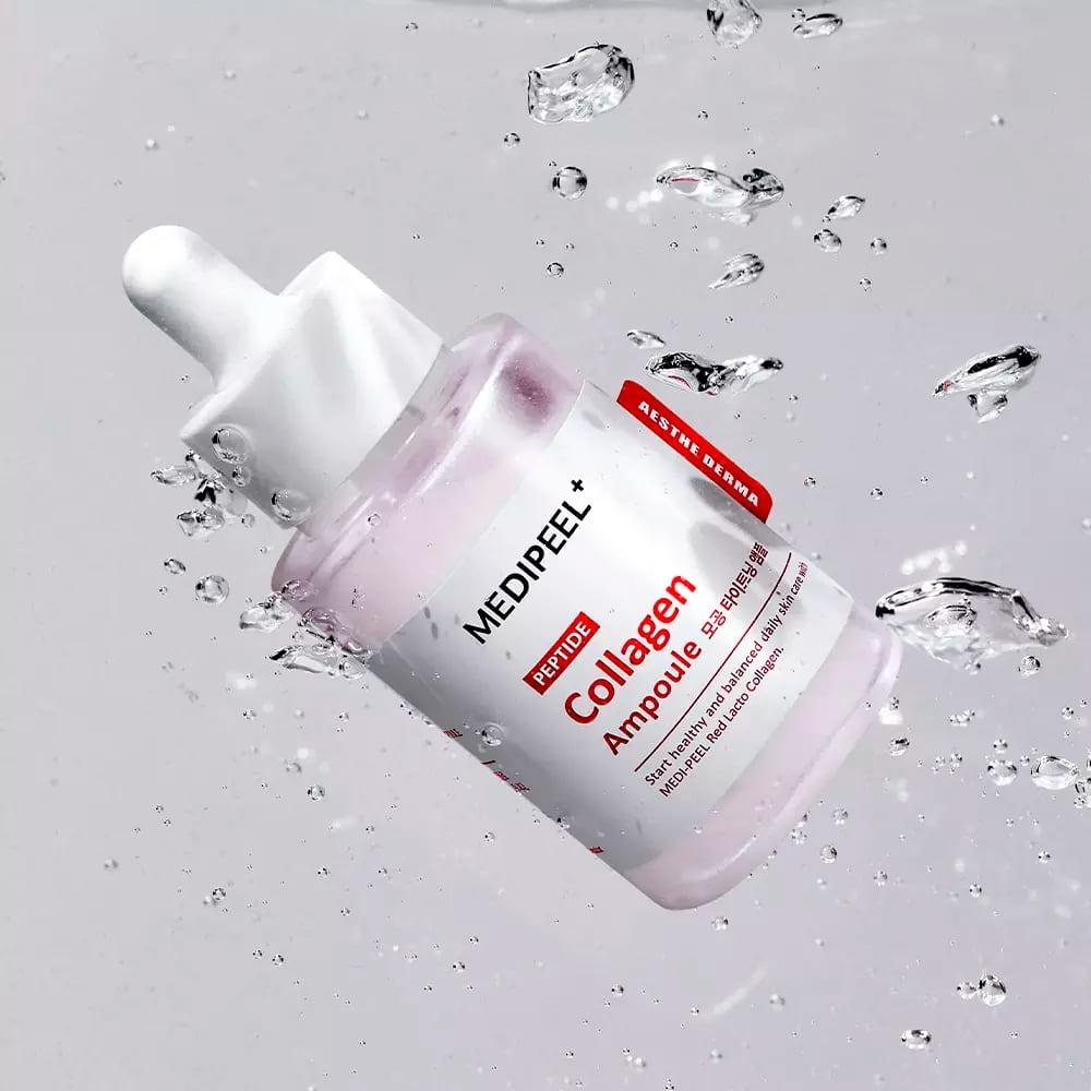 Укрепляющая пептидная ампула MEDIPEEL Red Lacto Collagen Tightening Ampoule подтягивает кожу, за счёт чего сужает расширенные поры и выравнивает рельеф.