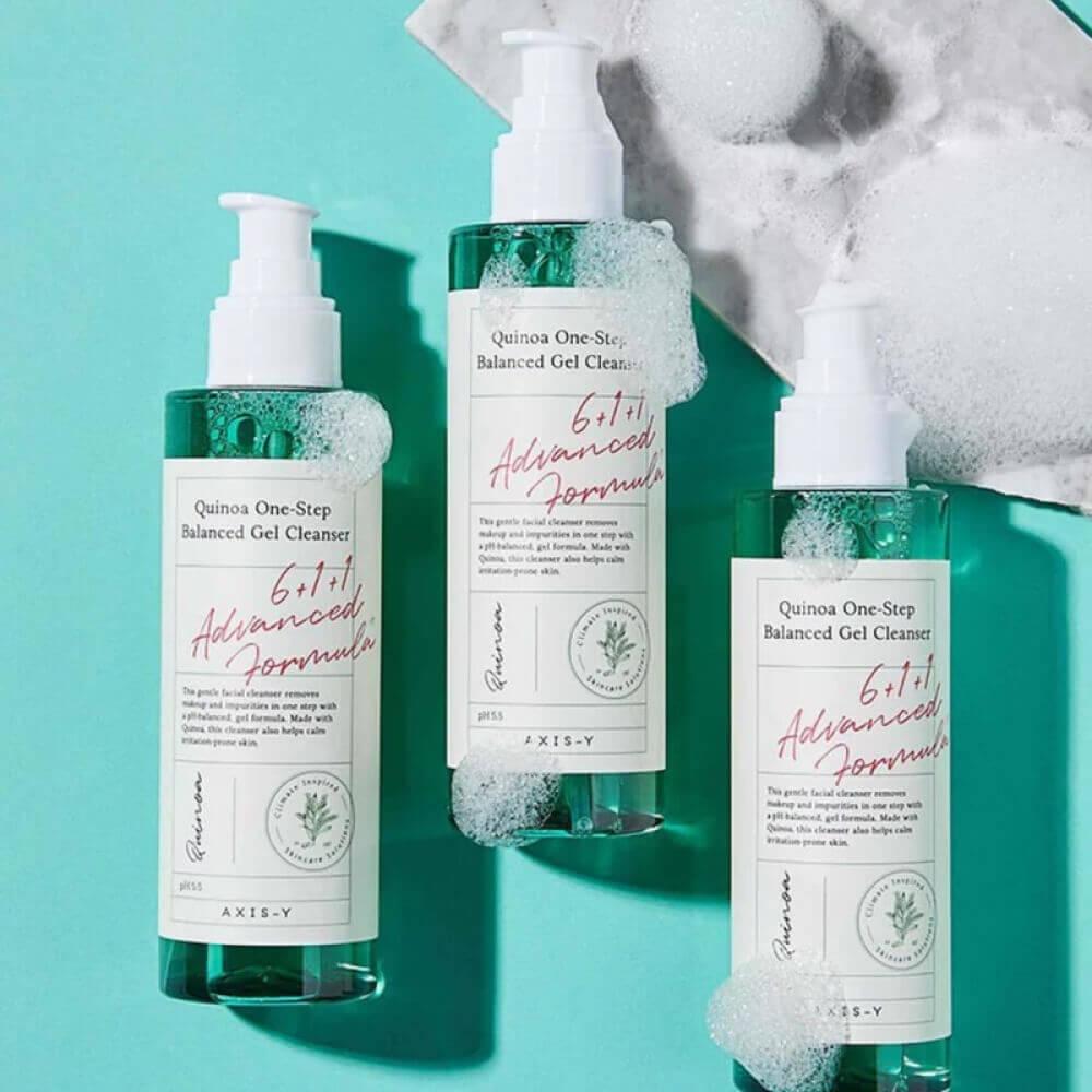 Универсальный очищающий гель с киноа AXIS-Y Quinoa One Step Balanced Gel Cleanser — балансирующее средство для умывания 2в1: смывает макияж, тональные и солнцезащитные средства, любые загрязнения и пыль. Абсорбирует излишки кожного сала и бережно очищает, не травмируя липидную мантию и не нарушая оптимального pH-уровня эпидермиса.